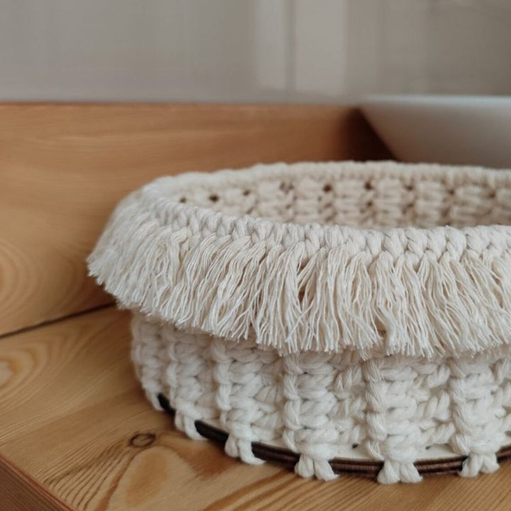 Handmade Macramé Basket – Natural Cotton Storage Organizer