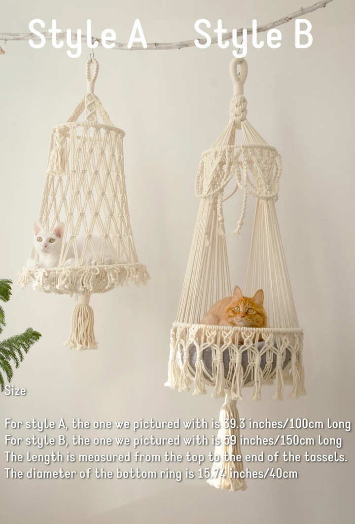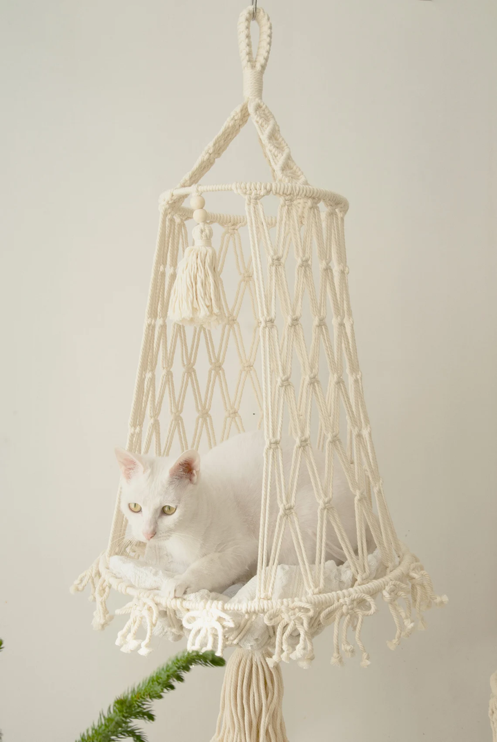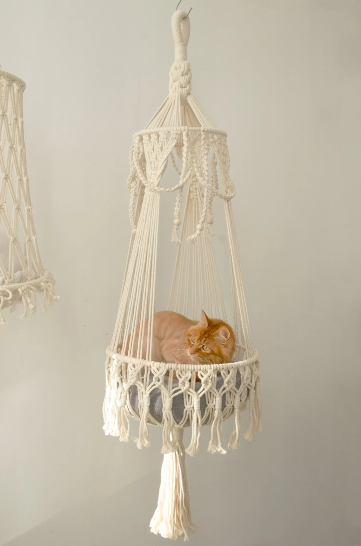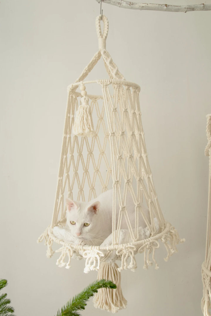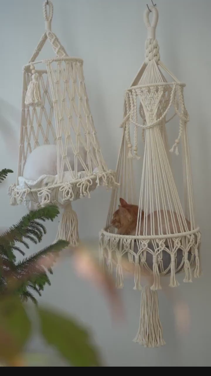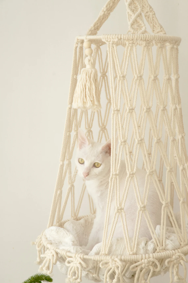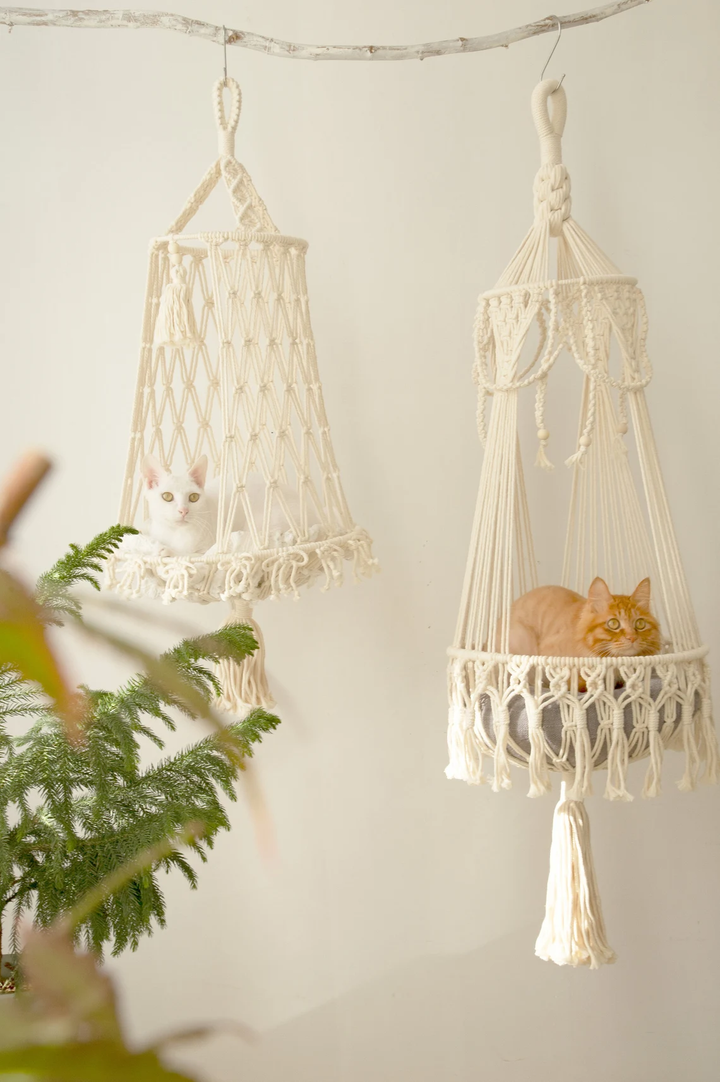 Add this handcrafted macramé cat hammock to your cart today and treat your furry companion to the comfort and style they deserve.
