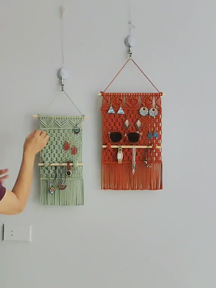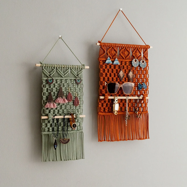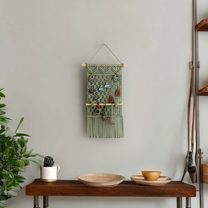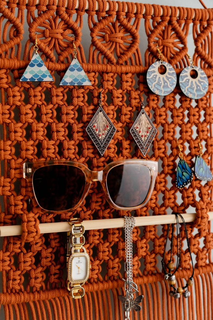 This earring hanger and earring holder is a stylish and functional solution for all your Storage Organization needs. It combines Jewelry Storage with Boho Decor, making it the perfect Birthday Gift or Gift For Her. It is also ideal for Boho Home Decor and a unique Macrame Wall Hanging gift for mom.