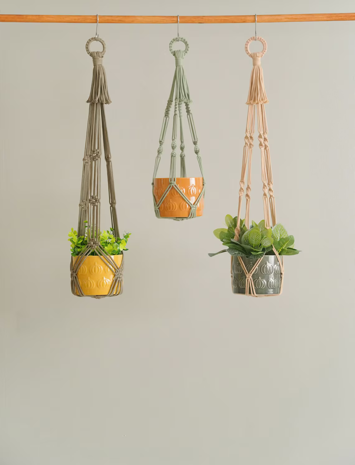 These Macrame Plant Hangers are handcrafted/hand-woven with Eco-Friendly Pure Cotton Cord.